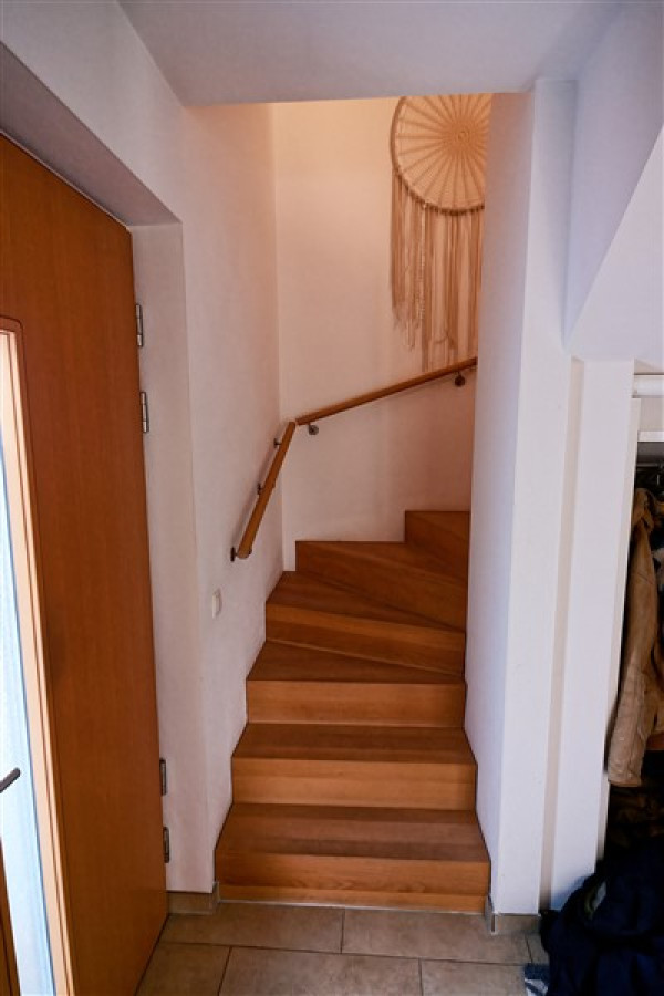 Es handelt sich um die Maisonette-Wohnung im OG/DG von der Straßenseite aus gesehen rechts (Westen), dazu gehört ein Kellerabteil.