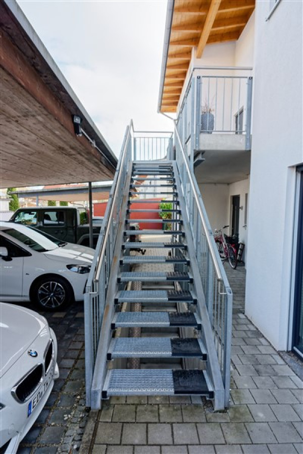 Zwei Stellplätze vor dem Haus (1 Carport und 1 Außenstellplatz) werden mit der Wohnung verkauft.