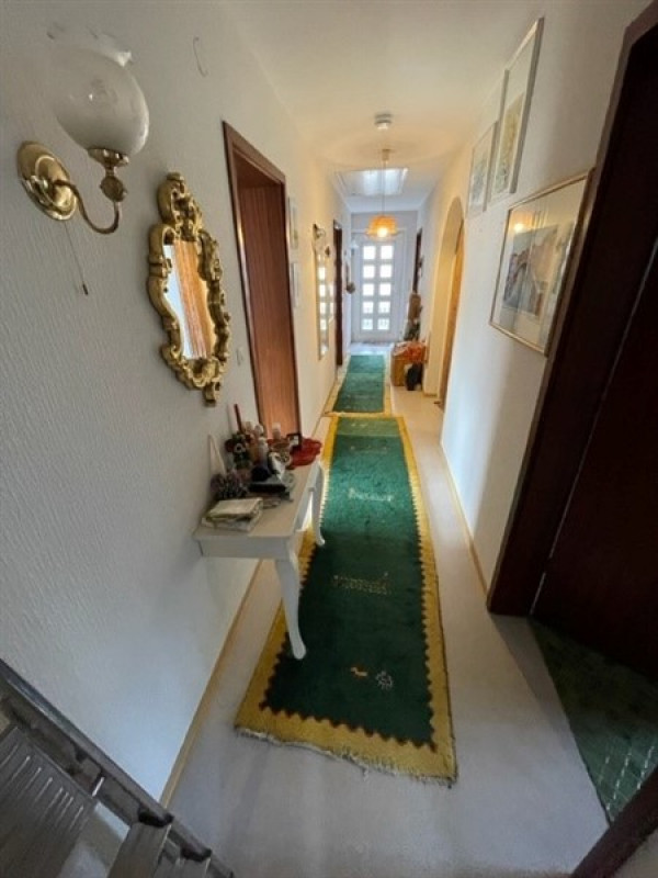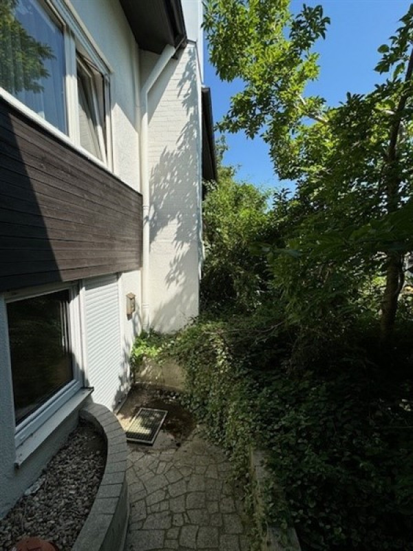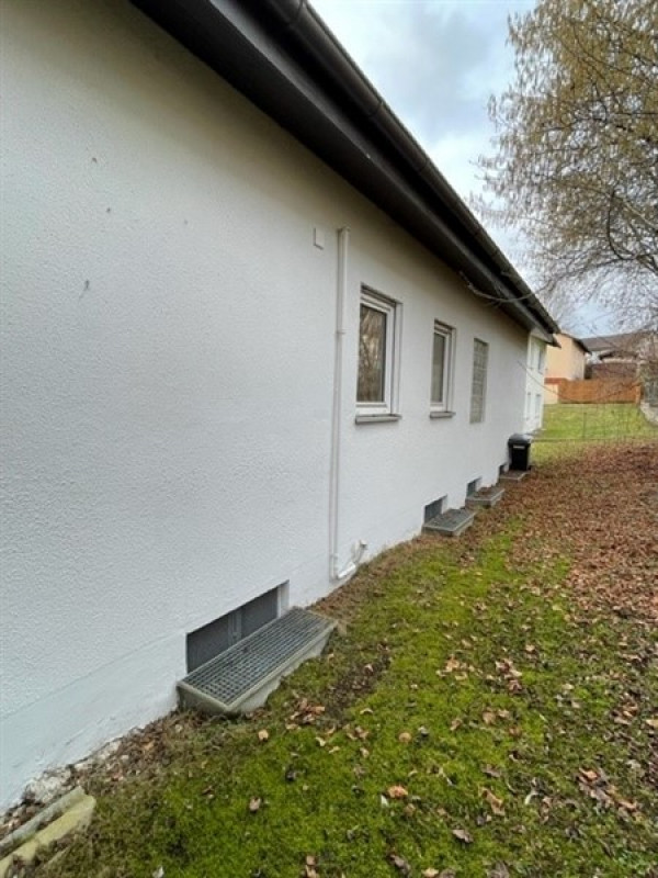schönes EFH in Bungalow-Bauweise, unterkellert mit ELW Im Hauptgeschoß (OG) befindet sich die Hauptwohnung. Hier befindet sich eine Küche, offener Ess-Wohnbereich mit überdachtem Balkon, ein Schlafzimmer mit Balkon, ein Bad (mit Dusche und Wanne), ein WC sowie ein Büro/ Gästezimmer. Über eine Treppe gelangen Sie in den Vorplatz des KG/ UG. Durch Hangbauweise sind die nördlichen Räume Kellerräume, die südlichen wurden als Einliegerwohnung genutzt. Hier befinden sich zwei Räume, einer mit separatem Zugang von außen und Küchenanschlüssen, einer mit Fenstern als Schlafzimmer nutzbar. Eine Diele mit innenl. Bad verbindet beide Zimmer. Weiter befinden sich im KG zwei Abstellräume. In den Bauplänen sind die Räume der Einliegerwohnung als Keller ausgewiesen, daher ist die ELW in der angegebenen Wohnfläche von ca. 106 m² nicht enthalten. Zusätzlich wäre eine Wfl. von ca. 50 m² als ELW nutzbar. Wfl. OG ca. 106 m² Wfl. möglich UG ca. 50 m²