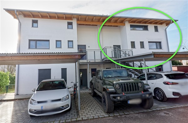 Zwei Stellplätze vor dem Haus (1 Carport und 1 Außenstellplatz) werden mit der Wohnung verkauft.