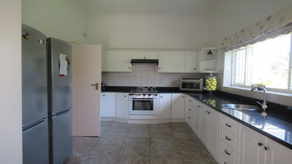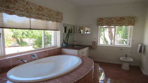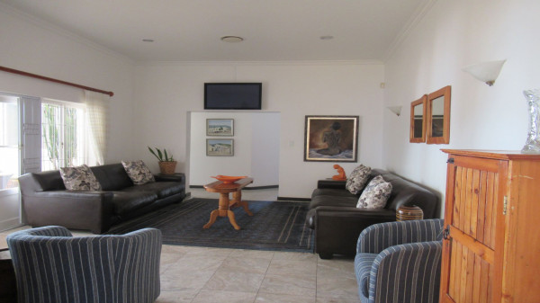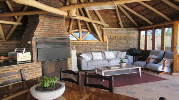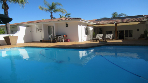 Die Immobilie bietet 4 Schlafzimmer (eines derzeit als Büro genutzt), 3 Bäder, Eingang, Lounge, Esszimmer, TV-Raum, geräumige Küche mit großer Speisekammer und Waschküche. Ein überdachter Freisitz und ein Lapa mit Grill (Braai) und Gameroom, ein beheizter pool und grüner, eingewachsener Garten (durch Brunnen bewässert) sowie ine große Doppelgarage mit Abtellfächen sind zudem vorhanden.
