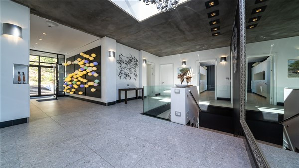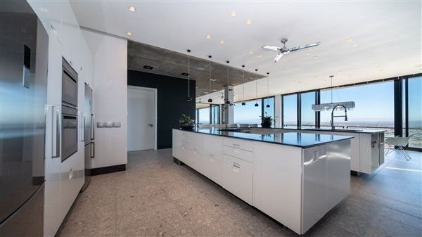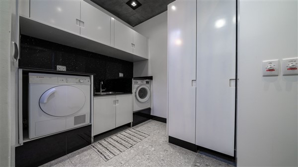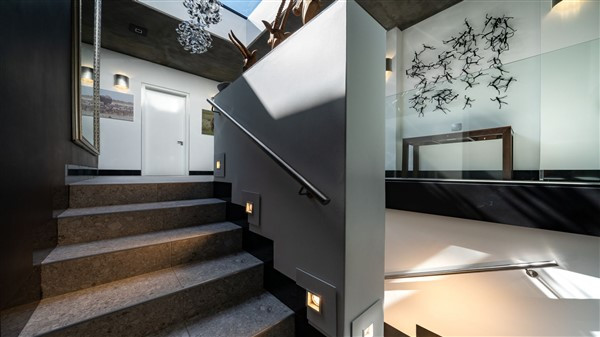 Erdgeschoss = oberstes Geschoß (Eingang von der Straße) - 2 große Schlafzimmer mit Bad, Büro, prächtige offene Küche, Waschküche, Esszimmer, zwei offene Lounges, Waschküche, Gästebad, 2 Garagen und sichere Parkplätze für Gästewohnungen.