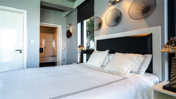 Zweiter Stock unten - Ein zweites unabhängiges VIP-Apartment mit dem gleichen Grundriss wie das obere und öffnet sich auf das hölzerne Pooldeck.